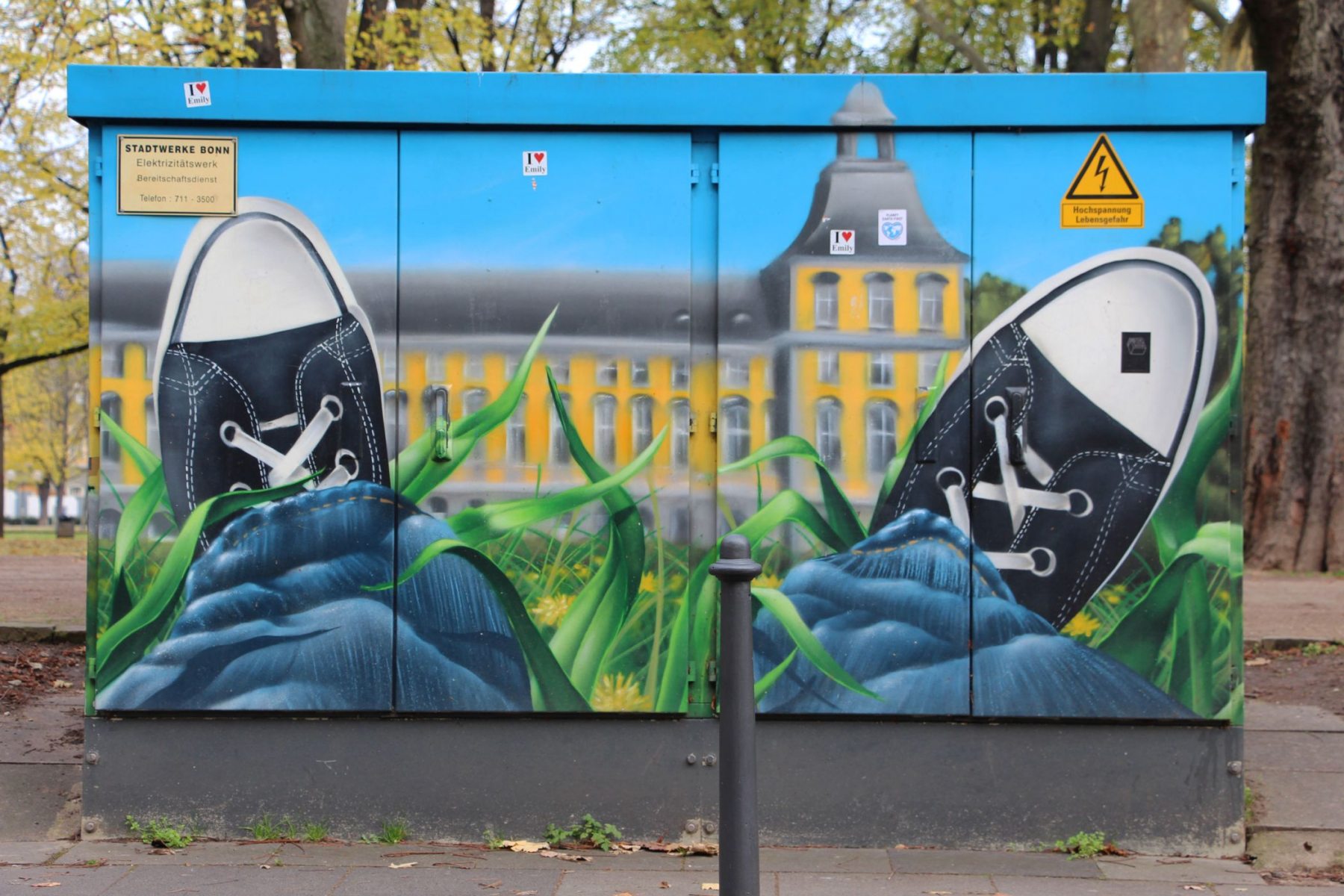 Das haben auch die Stadtwerke erkannt. Für ihre Aktion “Bunt statt dreckig” rufen sie regelmäßig dazu auf, besonders stark verschmutzte Kästen oder Trafohäuschen zu melden. Die Auserwählten werden von Profis rundherum mit detaillierten Motiven besprüht. Auf dem Bonner Stadtgebiet sind so mittlerweile knapp 30 Kästen von Tag-Gräbern zu echten Hinguckern geworden. Ob der Ehrenkodex auch die Stromkästen in Bonn erfolgreich beschützt? “Total”, ist Henseler überzeugt. “Keiner dieser Kästen ist seitdem verschandelt worden.”